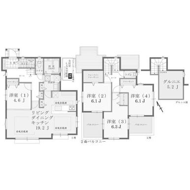 | 間取り(内訳) | 4LDK(洋6.3/6.1/6.1/4.6LDK19.2) | 建物面積 | 105.47㎡ |