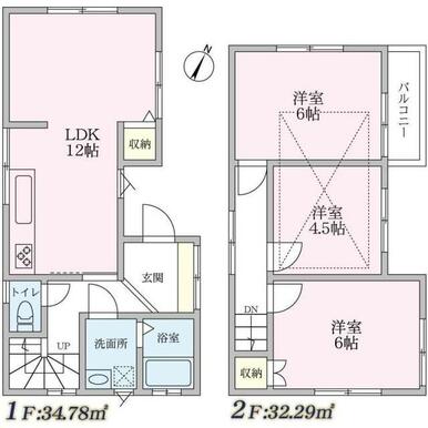 | 間取り(内訳) | 3LDK(洋6/6/4.5LDK12) | 建物面積 | 67.07㎡ |